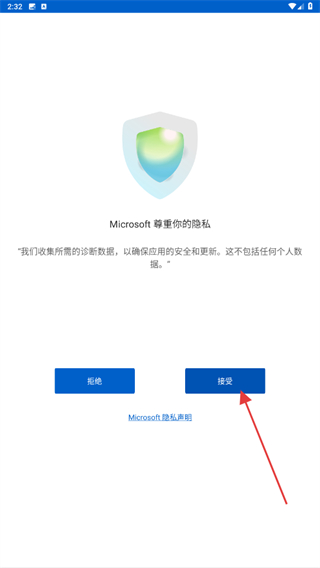 1、打开微软身份验证器的应用软件,进入时会弹出隐私声明,点击接受的按钮。