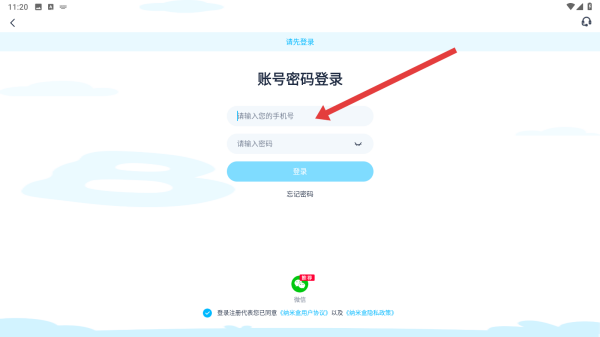 3、在账号密码登录页面中,点击输入框依次输入手机号和密码完成登录。