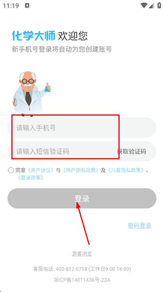 4、输入手机号和验证码,点击登录即可登录。
