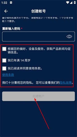 4、勾选相关协议,点击创建帐户,即可完成账号注册操作。