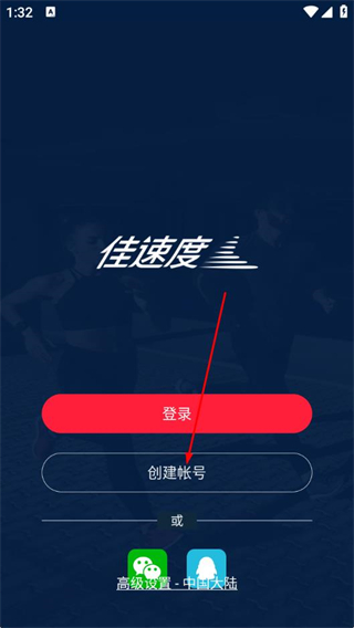 1、打开佳速度APP,点击创建帐号选项。