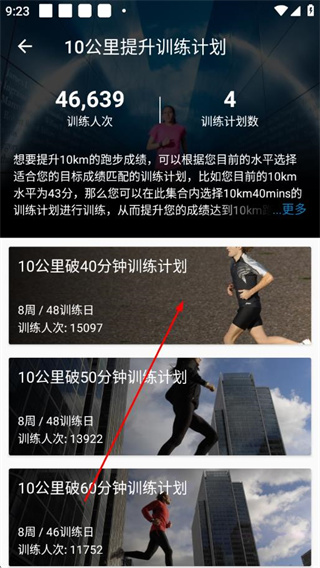 2、在训练页面的佳速训练计划区域,选择目标训练计划,点击进入计划列表页。