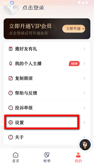 2、在个听书页面里,找到并点击主播声音选项,进入声音的选择界面。