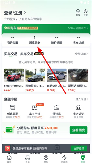 瓜子二手车app怎么删除浏览记录