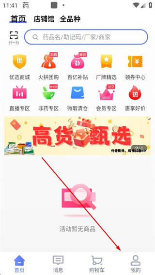 1、打开1药城app首页,点击底部导航栏的我的选项,进入个人中心界面。