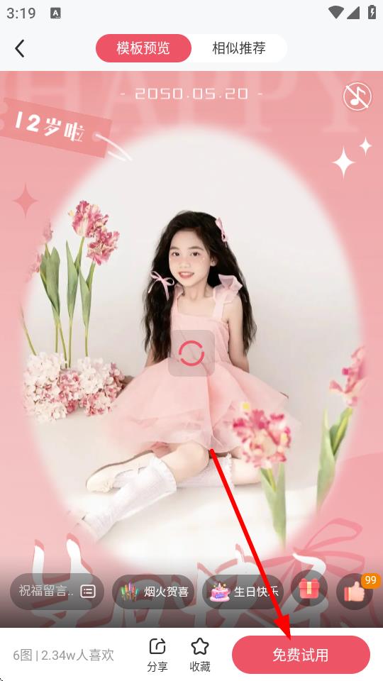 3、点击选中的模板进入模板预览界面,查看效果后,点击底部的免费试用按钮。