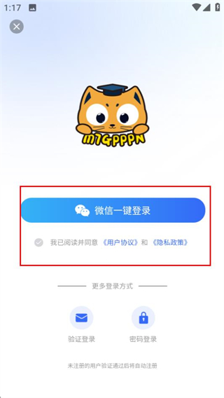 3、在登录页面,勾选协议后点击微信一键登录,完成账号登录操作。