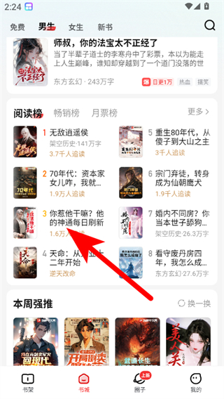 1、在纵横小说书城页面,点击要设置字体的小说,进入小说阅读页。