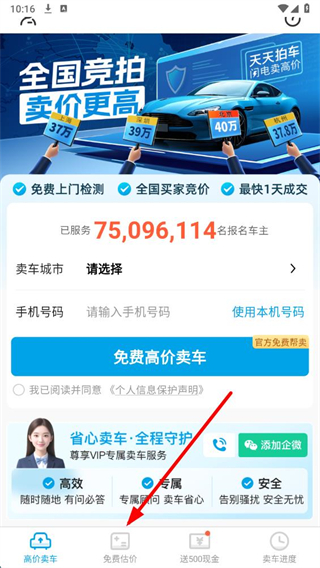 天天拍车app怎么免费估价