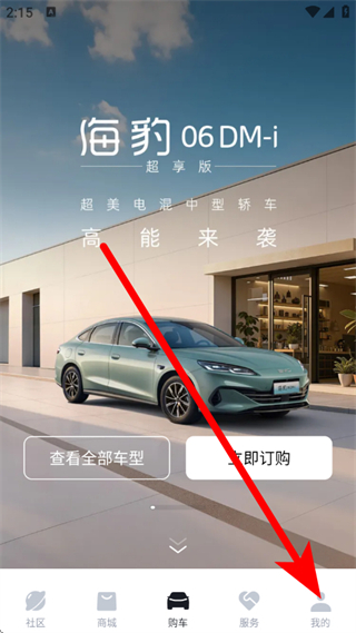 1、打开比亚迪海洋,点击底部的我的,进入我的页面。
