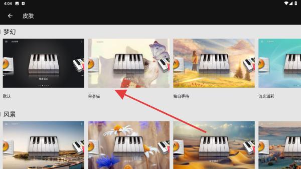 1、打开模拟钢琴App,主界面点击右上角的皮肤图标,进入皮肤的设置页面。