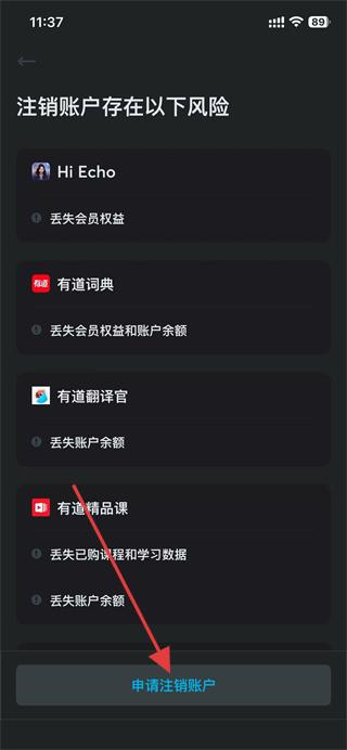 4、点击申请注销账户,按照提示完成账号注销操作。