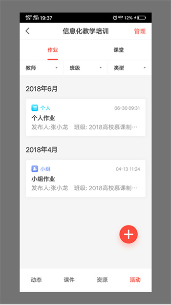 在团队教学模式中,课程负责人可以将其他任课老师加入到课程的教学团队中,为不同老师分配不同的班级,设置不同的功能权限。课程中所有班级可以共享资源。对于统一的教学安排或活动,只须由课程管理员统一设置,这样一来,大幅减少了重复的工作量。各班级任课老师仍可以针对自己的班级发布个性化的作业、测验、讨论等活动。