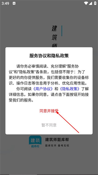 1、在服务协议和隐私政策弹窗中,点击同意并接受,进入登录页面。
