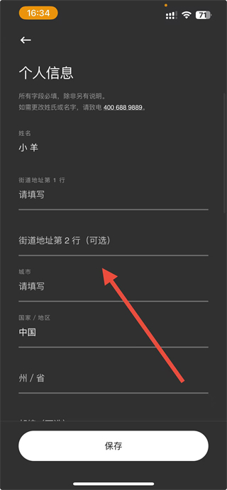 3、在个人信息界面中,可填写或修改信息,点击保存按钮,即可完成个人信息的修改操作。