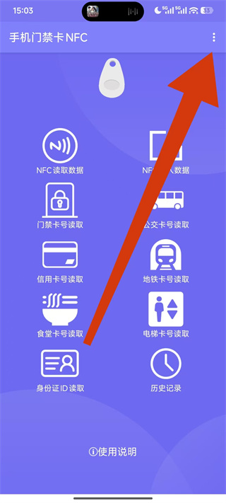 1、打开掌上NFC门禁卡,点击页面右上角的更多,展开操作菜单。