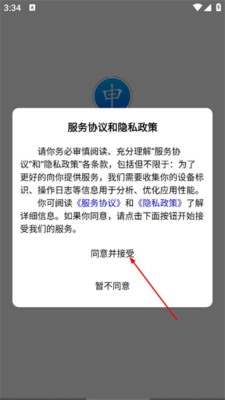 1、在服务协议和隐私政策弹窗中,点击同意,进入应用首页。