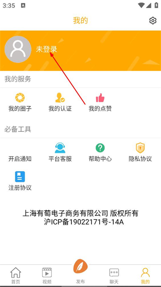 3、在个人页面中,点击未登录区域,进入登录页面。