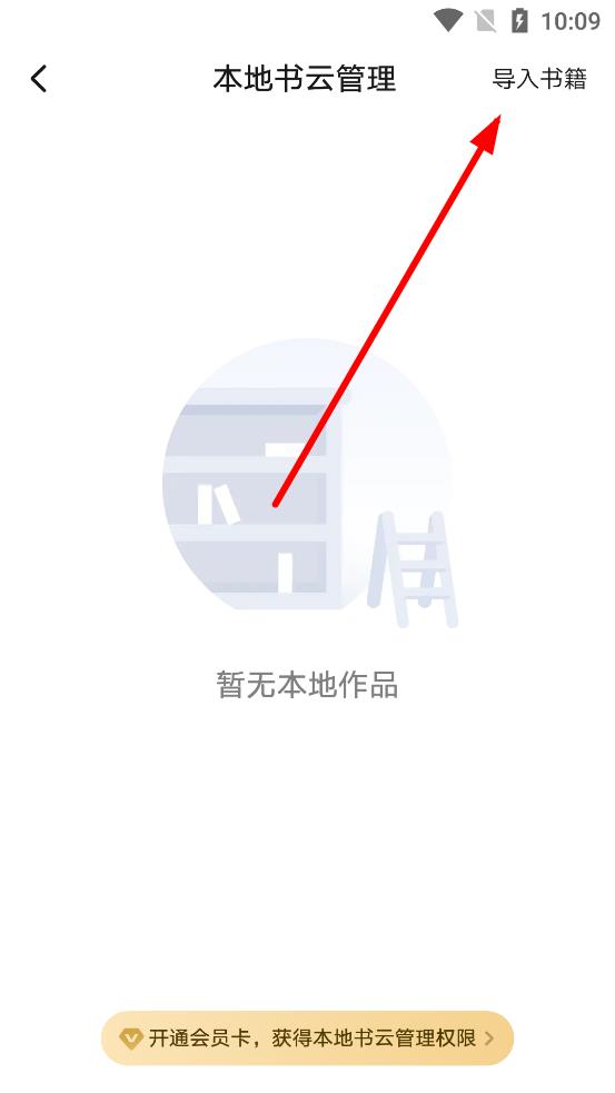 2、进入本地书云管理界面后,点击右上角的导入书籍按钮,此时会进入手机本地文件目录页面。