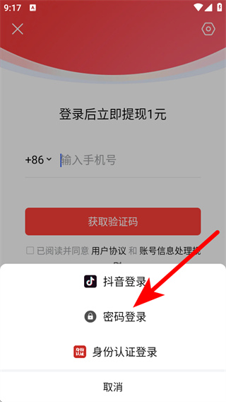 3、在菜单中需要选择密码登录,进入账号密码登录的页面。