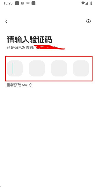 3、在输入短信验证码页面填写收到的验证码,完成账号的登录操作。