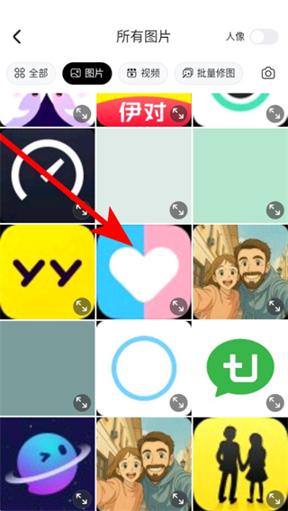 2、在图片选择界面,挑选需要添加边框的图片,进入编辑页面。