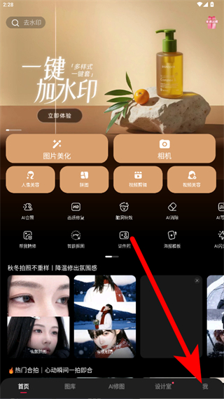 1、打开美图秀秀APP,点击右下角我,进入个人页面。