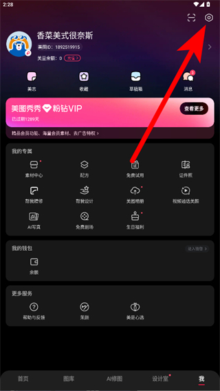 1、打开美图秀秀,点击底部导航栏的我选项,进入个人中心页面。