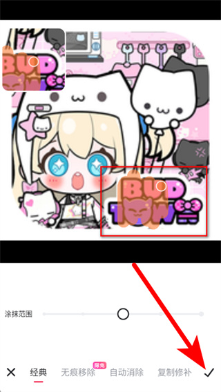4、在消除笔操作界面,涂抹需要消除的区域后,点击右下角的对勾确认,即可完成消除操作。