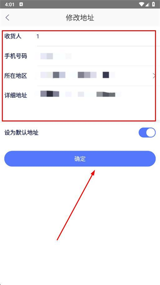 5、修改收货人、手机号码、所在地区、详细地址信息,点击确定。