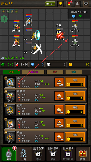 3、进入副本3F,指挥英雄攻击敌方单位,削减其血量。