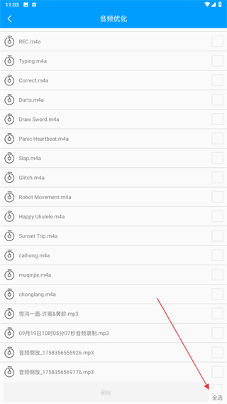 3、在音频优化的页面内,点击右下角全选的按钮。