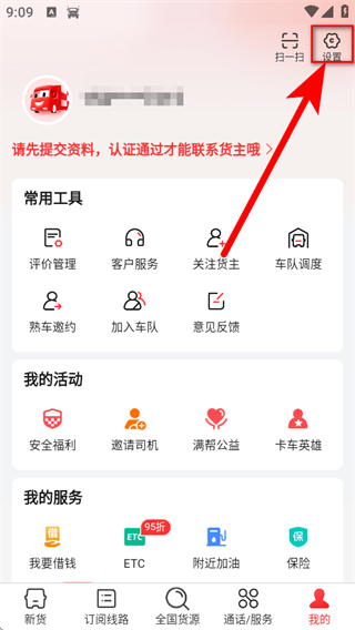 1、打开运满满,点击底部我的,进入个人功能操作页面。