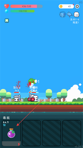 1、在关卡4中,使用毒瓶道具攻击敌人,辅助战斗。