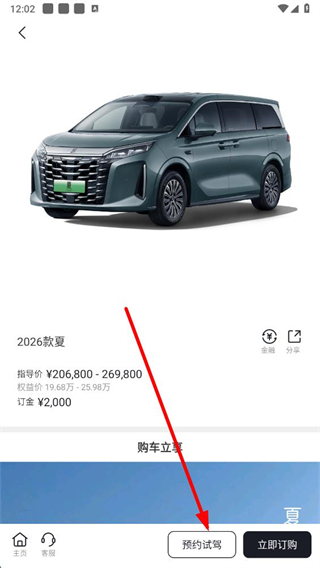 4、在车型详情页面,点击预约试驾,进入预约试驾页面。