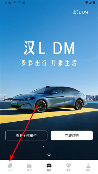 1、在比亚迪界面,点击底部的社区选项,进入社区相关页面。