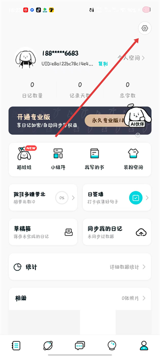 1、打开moo日记软件,点击界面右上角的设置按钮进入设置页面。
