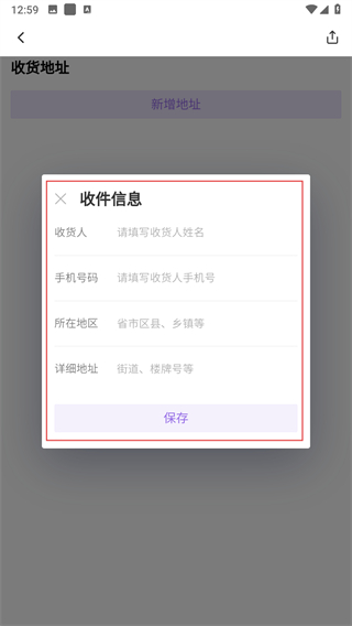5、在弹出的收件信息框中信息,完成后点击保存。