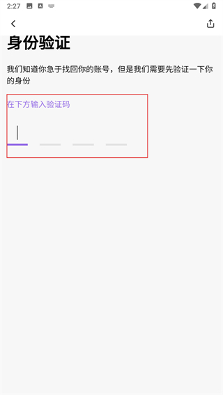 4、进入身份验证页面之后,输入收到的验证码。
