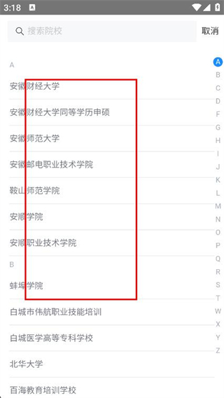 3、在院校列表中选择对应的院校,并选择对应的业务线。