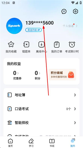 1、打开星火英语APP,点击底部导航栏我的选项。
