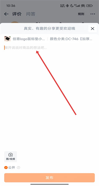 4、用户可以点击输入框,输入对商品的想法后点击下方发布按钮,即可完成追加评价。
