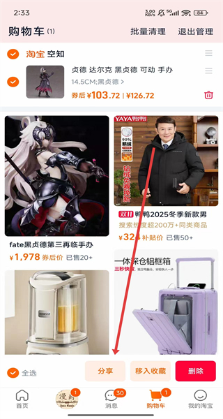 3、在选中商品后,可以点击下方分享按钮,将商品分享给好友。