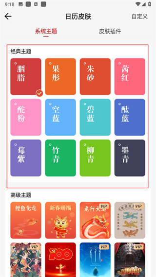 4、在日历皮肤设置界面,可选择经典主题的一款,并点击即可换肤成功。