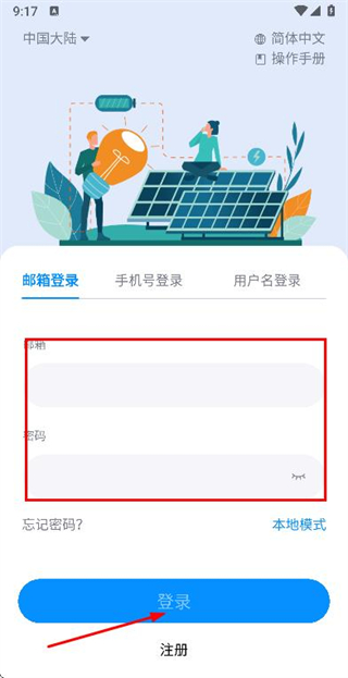 3、在登录页面填写对应登录方式的信息后,点击登录按钮完成登录操作。