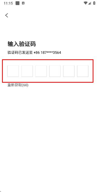 3、在输入短信验证码页面填写收到的验证码,完成账号的登录操作。