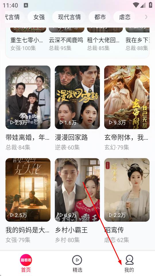 1、打开趣看看短剧APP,点击底部导航栏中的我的。