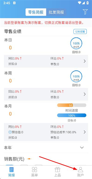 1、在简报页面点击底部的账户选项,进入账户页面。