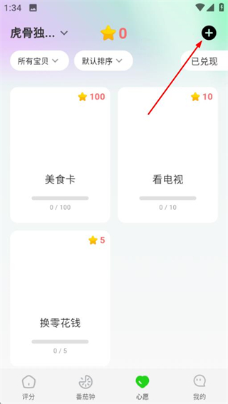 2、在心愿页面,点击右上角加号按钮打开心愿库选择界面。