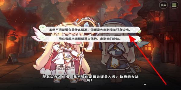 1、玩家在剧情对话中选择对应的行动选项,决定走向指定角色身边,推进当前的剧情。